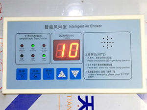 系統(tǒng)采用PLC自動(dòng)化的控制手段,控制面板上LED顯示屏可正確顯示風(fēng)淋的運(yùn)行狀態(tài)、雙門的互鎖狀態(tài)、風(fēng)淋周期進(jìn)度和延時(shí)開門狀態(tài),并設(shè)有光電感應(yīng)器,單向通道風(fēng)淋室,從非潔凈區(qū)進(jìn)入,關(guān)門后紅外線感應(yīng)有人就吹淋,吹淋后入門鎖閉,只能從出門走出風(fēng)淋室。